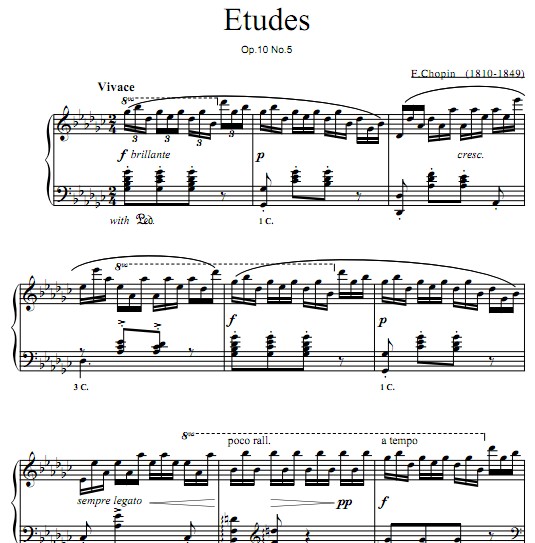 肖邦黑键练习曲钢琴谱 étude Op. 10, No. 5