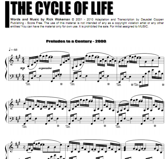 Words and Music by Rick Wakeman © 2001 - 2010 Adaptation and Transcription by Deusdet Coppen