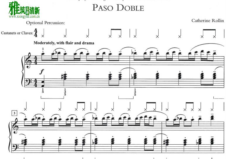琴譜 Sheet Music 流行音乐乐谱 楽譜 五线谱 Catherine Rollin - Paso Doble钢琴谱 PDF格式 共3页 清晰版 可 打印