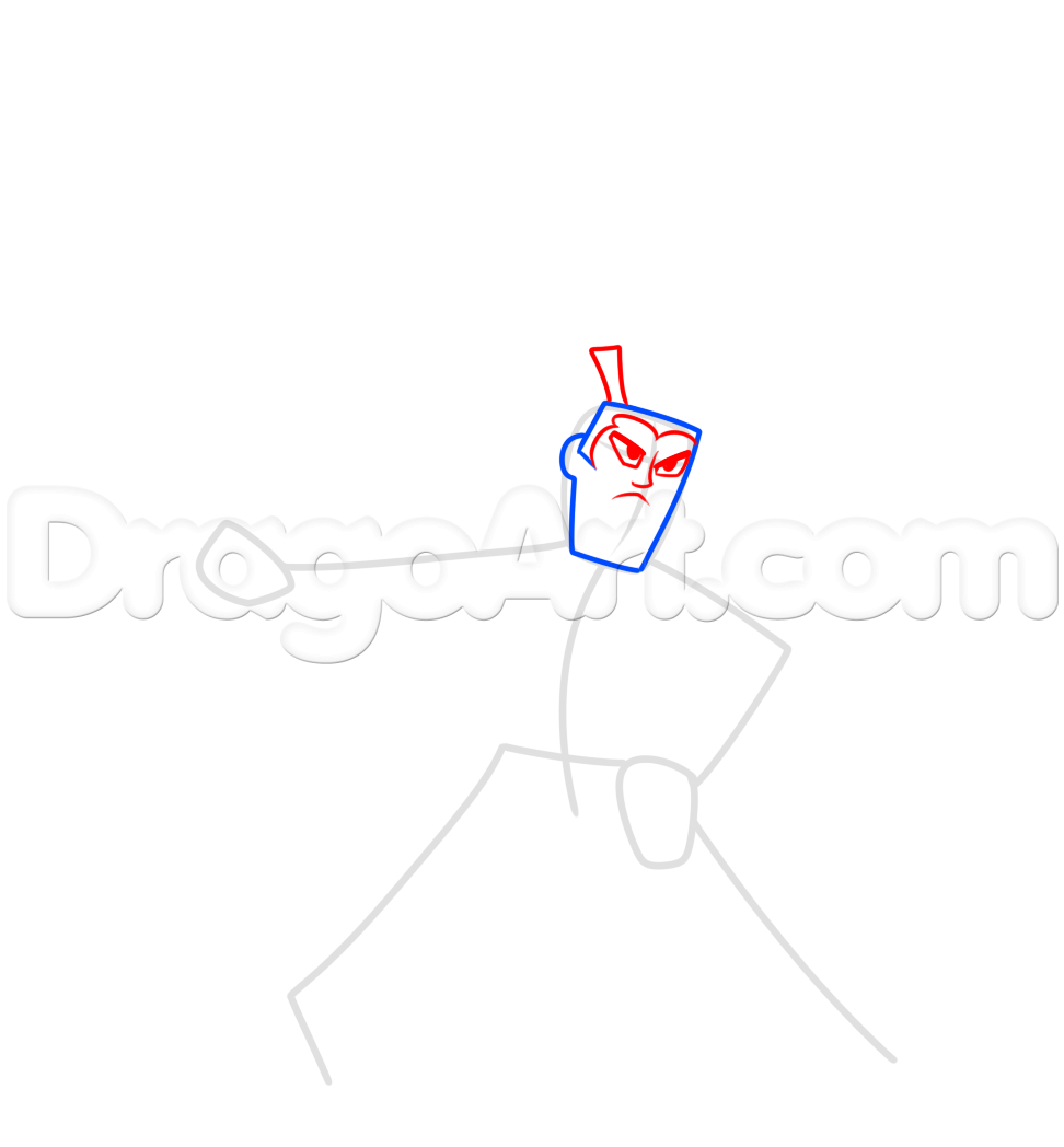 步骤6。我们现在将用他的武士刀,然后将手、手和手臂的手和手臂拉上。