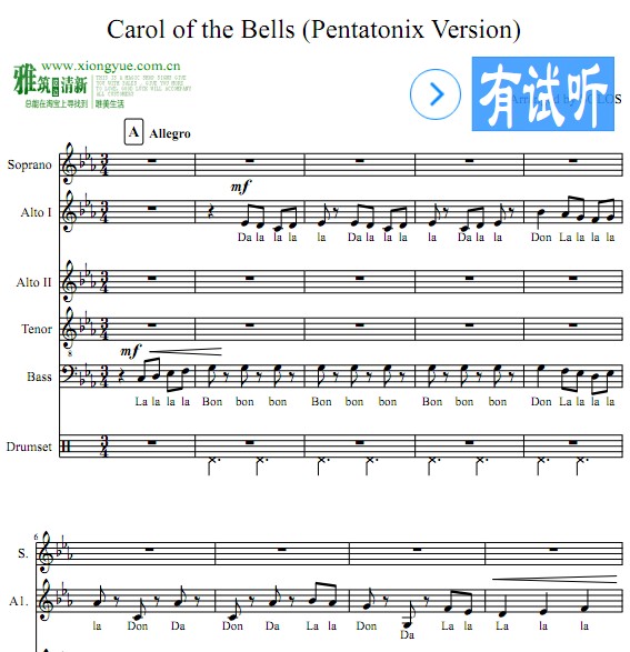 说明:1、本站乐谱无限放大不失真;2、logo:雅筑清新。