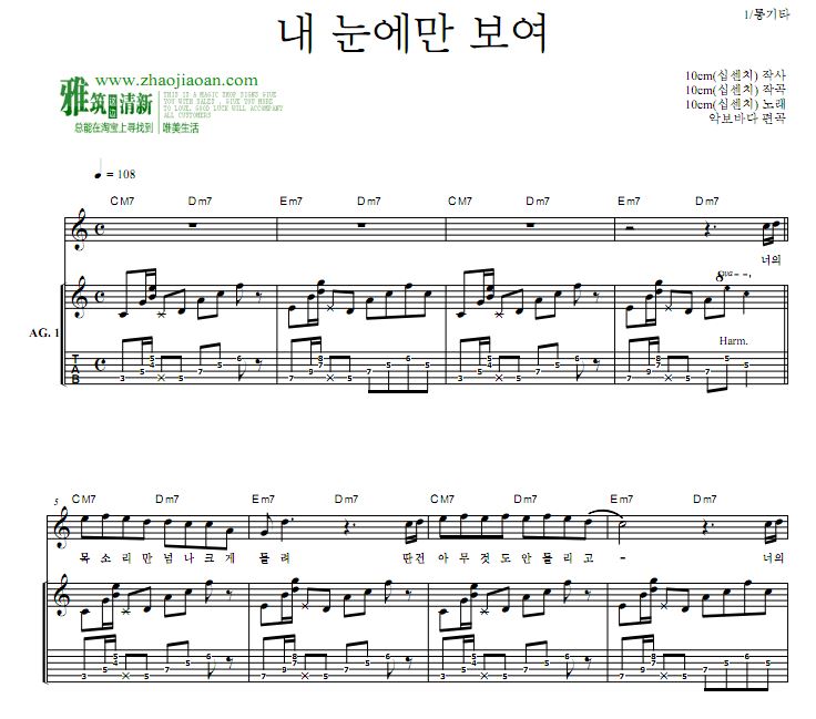鬼怪 OST Part.2 10cm -只在我眼中吉他谱