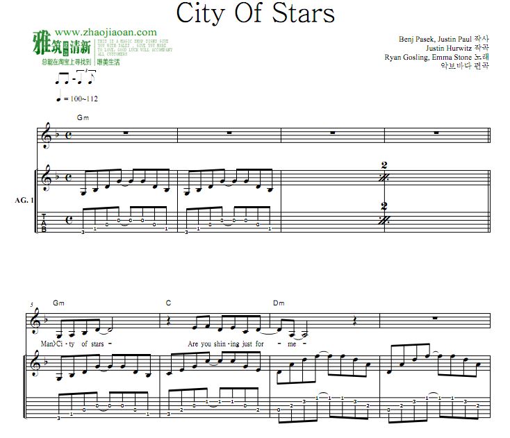 爱乐之城 City Of Stars吉他谱 Ryan Gosling, Emma Stone