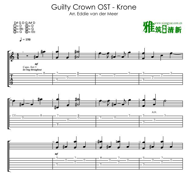 琴譜 Sheet Music 荷兰小哥Eddie吉他谱 楽譜 五线谱 Eddie官方吉他谱 PDF格式 共5页 高清晰版 可打印