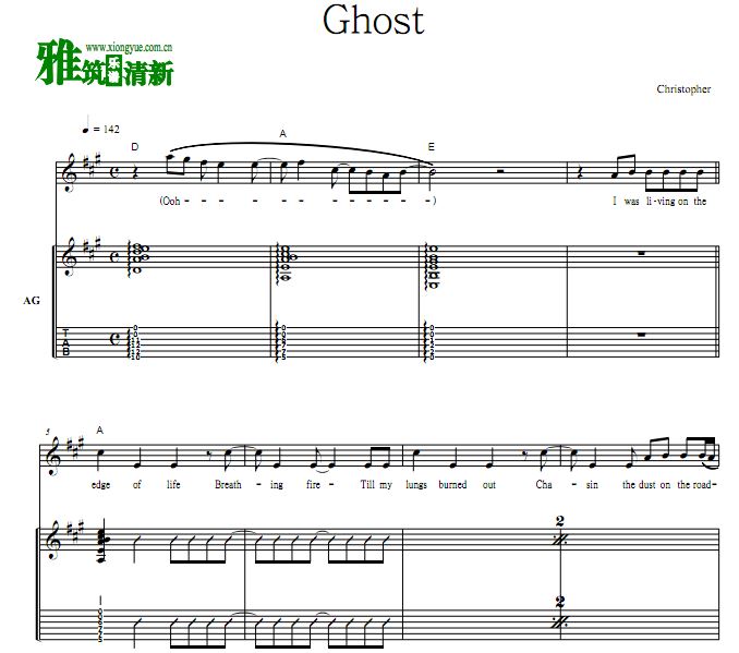 Christopher - Ghost 民谣吉他谱 歌谱 六线谱