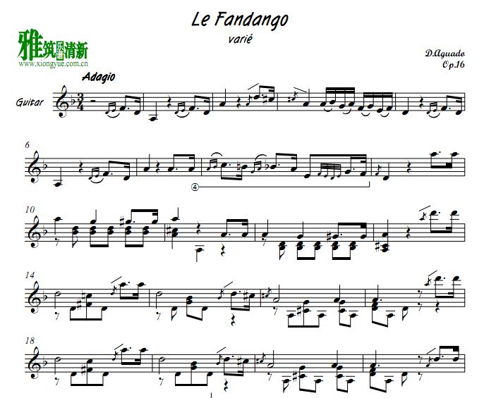阿瓜多 凡丹戈变奏曲第16号吉他谱