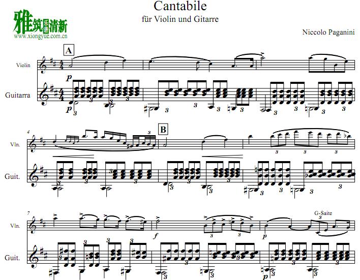 Paganini 帕格尼尼- 柔美如歌Cantabile 小提琴吉他二重奏谱