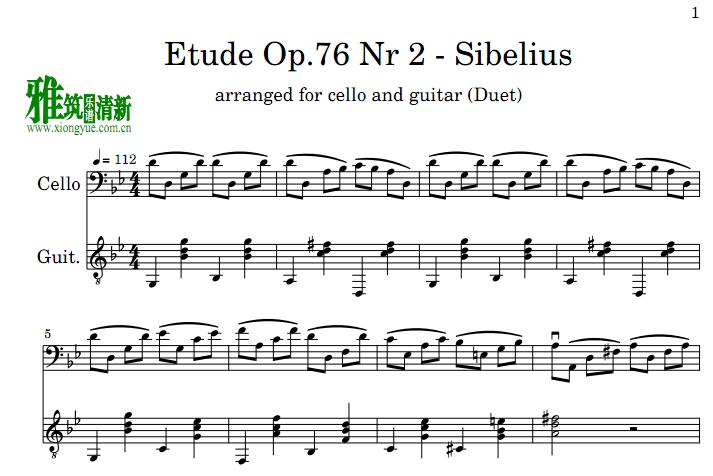 Sibelius 西贝柳斯 练习曲 Etude Op.76 No.2 大提琴吉他二重奏谱