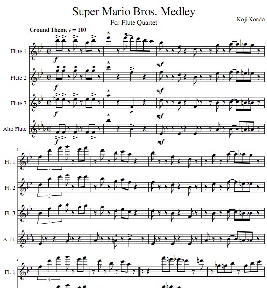 琴譜 Sheet Music 动漫游戏音乐乐谱 楽譜 五线谱 长笛谱 PDF格式 共8页 高清晰版 可打印