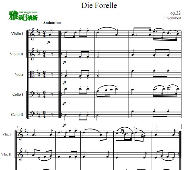 舒伯特 Die Forelle 鳟鱼 二小提中提二大提 弦乐五重奏谱