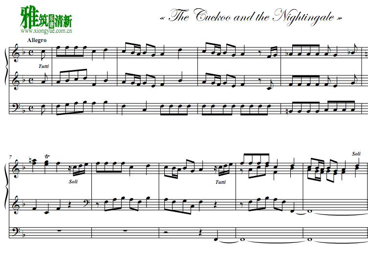亨德尔HWV 295 F大调第13号管风琴协奏曲 杜鹃与夜莺 管风琴谱