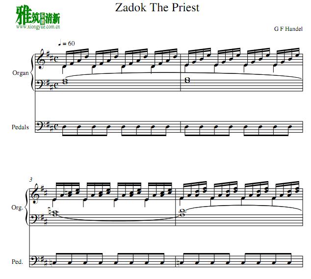 亨德尔Handel - Zadok the Priest HWV 258 管风琴谱