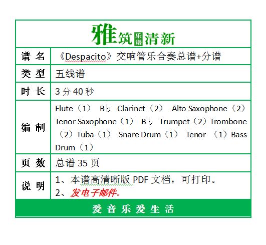琴譜 Sheet Music 欧美流行音乐管乐合奏谱 楽譜 五线谱 钢琴谱 PDF格式 总35页 高清晰版 可打印