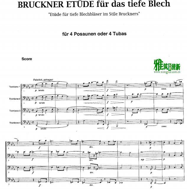 Enrique Crespo Bruckner Etude 长号四重奏谱