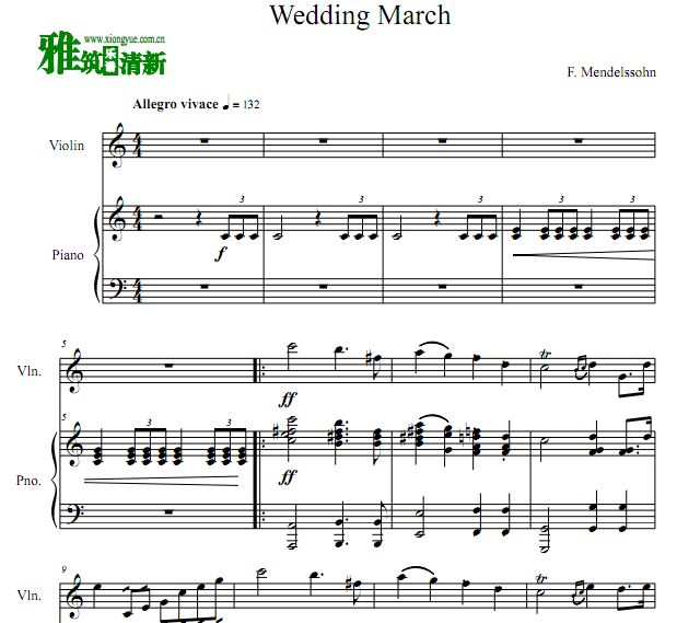 门德尔松 Wedding March小提琴钢琴谱 时长:100秒