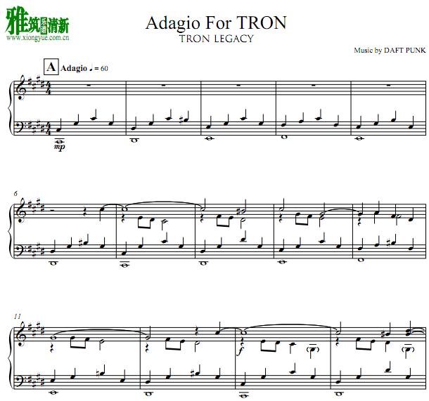 TRON LEGACY创战纪 - adagio for tron钢琴谱