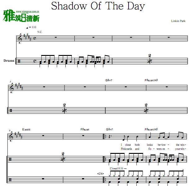 林肯公园鼓谱 - Shadow Of The Day 鼓谱