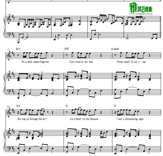 老鹰乐队 Eagles - Hotel California弹唱钢琴谱