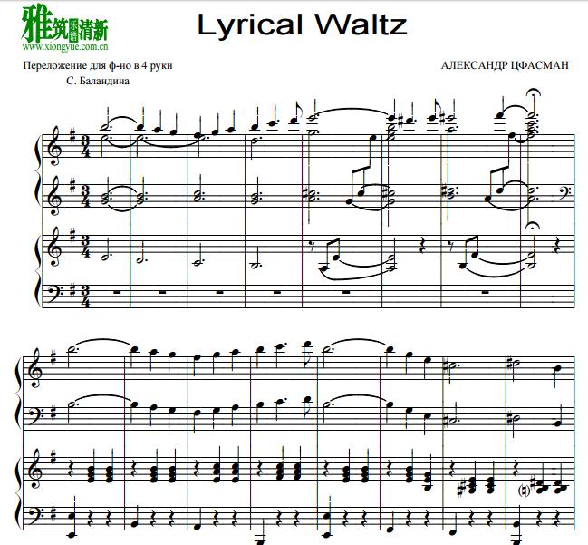 Alexander Tsfasman茨伐斯曼 Lyrical Waltz四手联弹谱