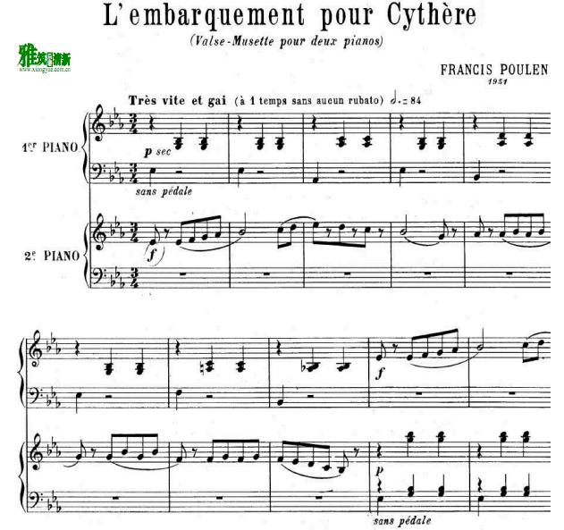 奔赴西泰尔(开往西泰尔的船)双钢琴谱