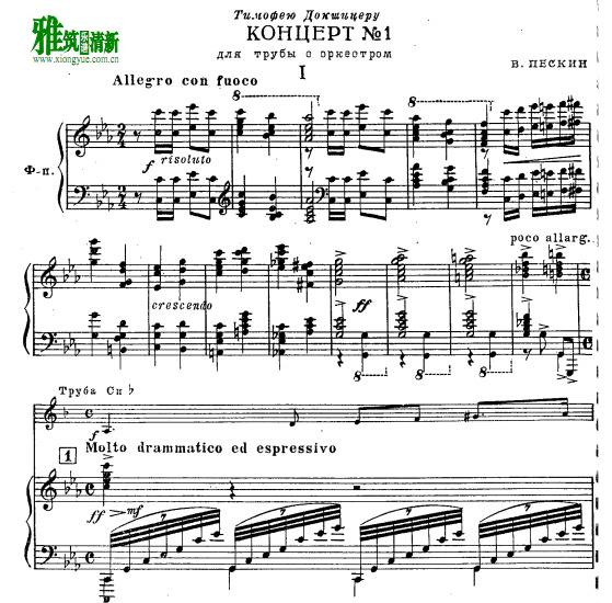 peskin佩斯金 c小调第一小号协奏曲小号钢琴伴奏谱