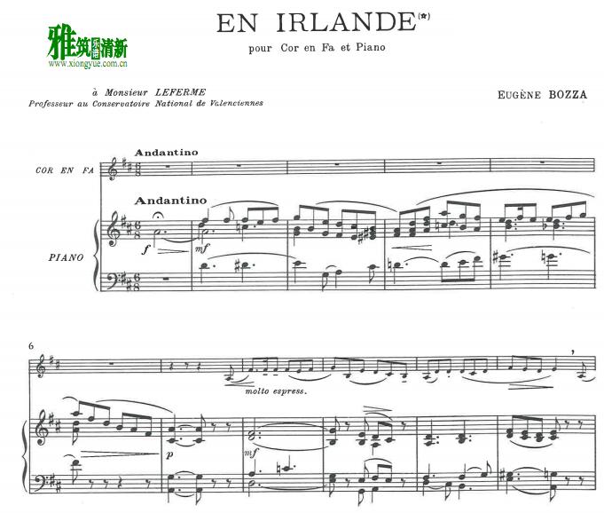 Eugene Bozza 尤金·博扎 - en irlande 圆号钢琴伴奏谱