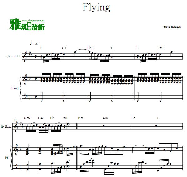 史蒂夫·贝瑞卡Steve Barakatt -Flying降E萨克斯钢琴谱