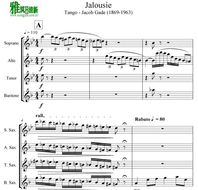 Tango Jalousie 嫉妒探戈 萨克斯四重奏谱