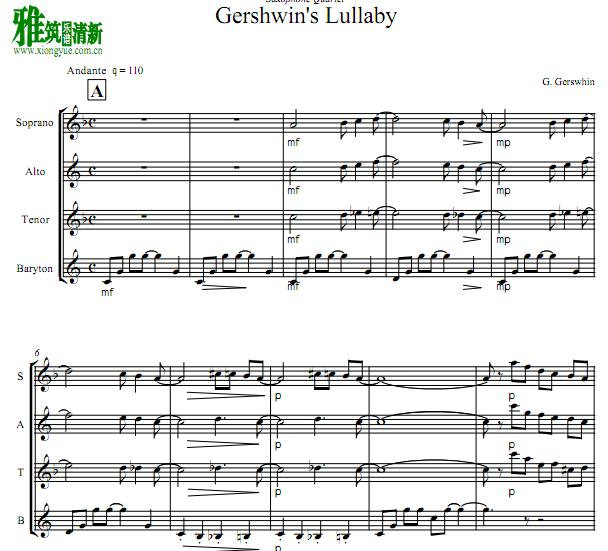gershwins lullaby 格什温 摇篮曲萨克斯四重奏谱