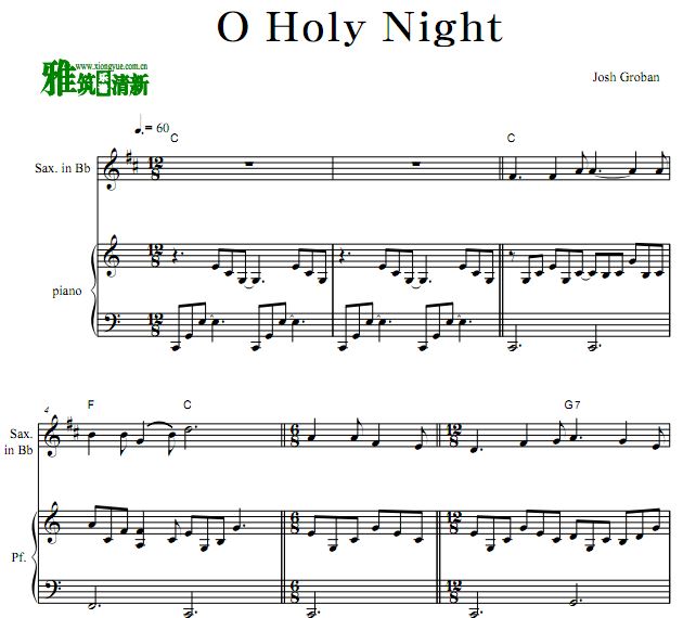 《O Holy Night》是一首著名的圣诞颂歌,由法国作曲家Adolphe Adam于1843年创作。这首歌曲以优雅而感人的旋律,以及鼓舞人心的歌词,表达了对耶稣基督诞生的庆祝与敬畏之情。 这首歌曲的旋律优美而庄重,非常适合在圣诞节期间演唱。其旋律既有优雅的旋律线条,也有充满力量的和声,非常适合表达对耶稣基督的敬仰和崇拜之情。其旋律中充满了和谐、平稳、柔和的特点,让人感受到一种温暖安详的氛围。 现将此曲目编制成《O Holy Night》萨克斯钢琴重奏谱,这首歌曲的演奏难度较高,需要有一定的技巧和经验才能演奏好。特别是钢琴部分,需要掌握好音准和节奏,同时要注重演奏出钢琴特有的音色和质感。萨克斯部分则需要掌握好口型和呼吸技巧,吹奏出清晰而柔和的旋律线条。此外,萨克斯与钢琴之间的协调和配合也是非常重要的,需要演奏者之间的默契和配合才能达到最佳效果。