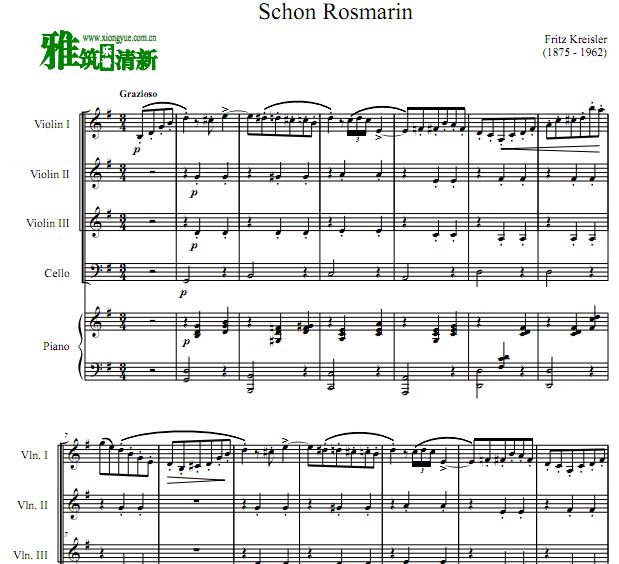 Fritz Kreisler 克莱斯勒 美丽的罗斯玛琳小提琴大提琴钢琴五重奏谱