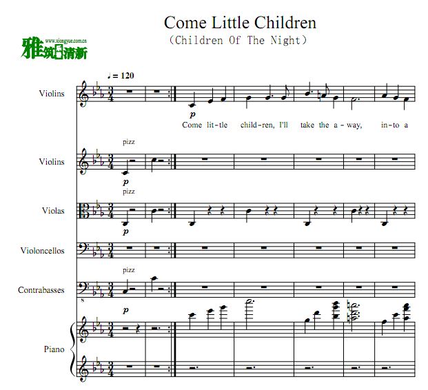 小马宝莉 Come Little Children 双小提琴中提琴大提琴低音提琴钢琴六重奏谱