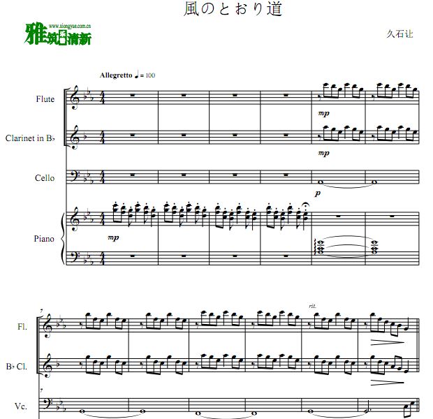 風のとおり道长笛单簧管大提琴钢琴四重奏谱