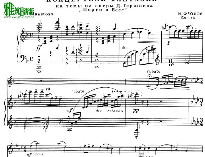 格什温 - 弗罗洛夫 波吉与贝丝 主题音乐会幻想曲 小提琴钢琴伴奏谱