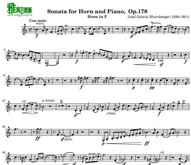 莱茵伯格 圆号奏鸣曲 圆号谱