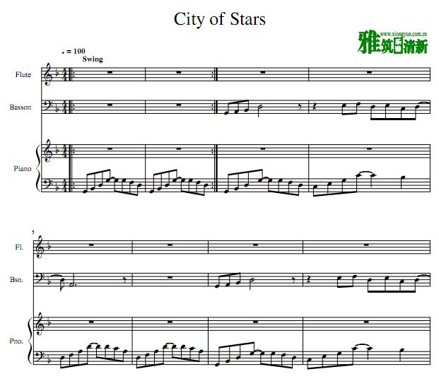 City Of Stars 爱乐之城主题曲长笛巴松钢琴三重奏谱