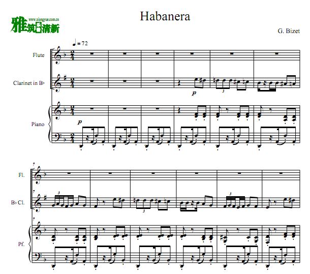 卡门 - habanera 哈巴涅拉长笛单簧管钢琴谱