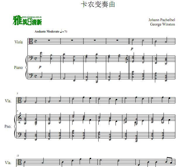 乔治·温斯顿 卡农变奏曲中提琴钢琴谱