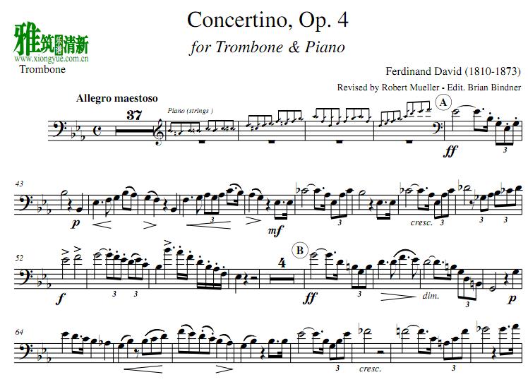 FERDINAND DAVID - KONZERT FUR POSAUNE UND KLAVIER IN B-DUR FUR BASSPOSAUNE 低音长号谱