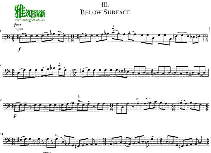 Daniel Schnyder - Bass Trombone Sonata III. Below Surface 长号谱