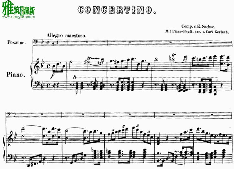 叶-萨斯 降B大调长号协奏曲 长号钢琴伴奏谱