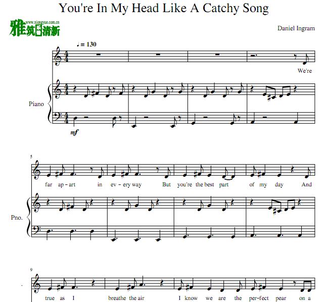 You're In My Head Like a Catchy Song钢琴伴奏弹唱歌谱