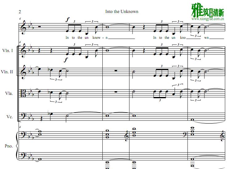 冰雪奇缘2 Into the Unknown 声乐弦乐钢琴伴奏谱