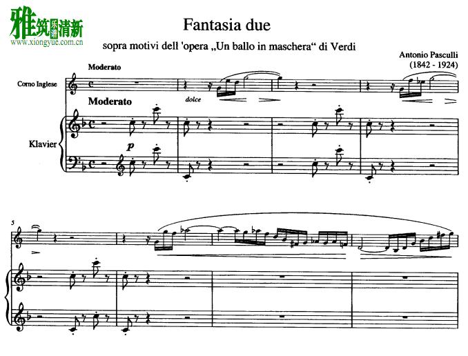 帕斯库里 - Fantasia 2 sopra motivi dell’opera Un ballo in maschera 英国管钢琴伴奏谱