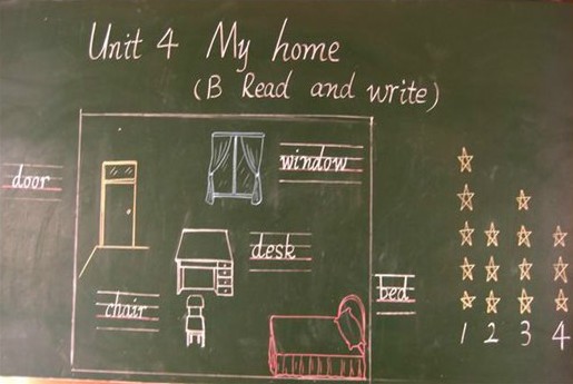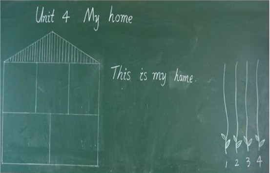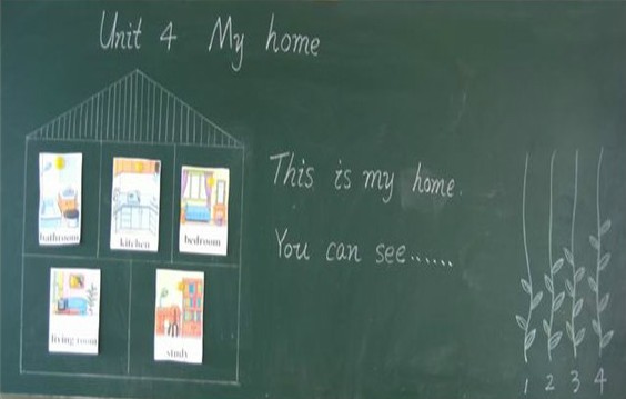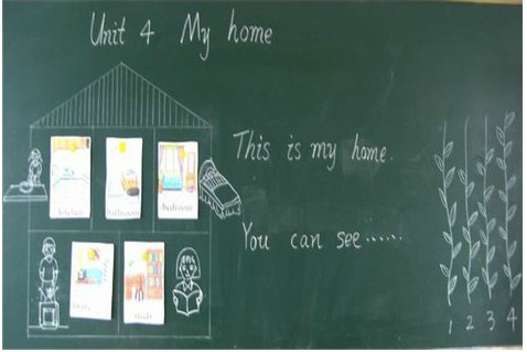 教学时教师必须考虑板书内容呈现的次序和时间,呈现得太早或太晚都会对学生产生一定的影响。例如:有大部分教师喜欢课前在黑板上完成板书,他们认为,课前完成板书可以节省教学时间,可以充分利用好课堂的每一分每一秒。但一览无余的板书,可能会因为缺乏吸引力而提不起学生的兴趣。又有些老师趁学生读书的时候自己匆匆忙忙地板书,或有些老师在讲完知识点后回过来补写板书。这些做法都是不可取的。因为板书的生命力在于它的动态生成性,富有生命力的板书应该随着教学的进程,随着学生的学习变化不断生成。因此,教师在呈现板书时要掌握时机。例如在PEP BOOK 3 UNIT 4 My home时,我用了如下步骤。
