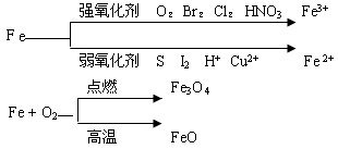 B 根据方程式中Fe的变化价态,同学们自然得出这节课的重点内容。即Fe遇强氧化剂时显+3价,遇弱氧化剂时显+2价。随后紧接着问:Fe遇冷的浓硝酸一定会显+3价吗?一个同学立即回答说:不行,因为发生了钝化,但在加热条件下能反应。我于是再追问:Fe和硝酸反应后显+3价,和HCl反应却显+2价,这是为什么?又有一位同学立即回答:因为HCl是非氧化性的酸。