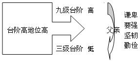 设计意图:王松泉先生说:板书是“反映课文内容的镜子,展示作品场面的屏幕; 是开启学生思路的钥匙;进入知识宝库的大门;是课堂的眼睛;读写结合的桥梁……”好的板书设计应该是教学活动中师生双边互动的缩影,就像一份微型教案,在教学活动中起画龙点睛的作用。我设计这样的板书,抓住“台阶高,屋主人的地位就相应高” 这个文眼,通过父亲耗尽毕生精力,终于将三级的低台阶变成了九级的高台阶这一漫长而艰辛的过程,从而更好地理解父亲勤俭、坚韧、要强、谦卑的性格特点。)