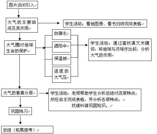 通过阅读课本内容自主学习大气各垂直分层的特征,帮助学生初步了解各层大气的特点,以及与人类活动的关系,学会从身边的自然现象中发现问题,分析问题和思考问题的方法。