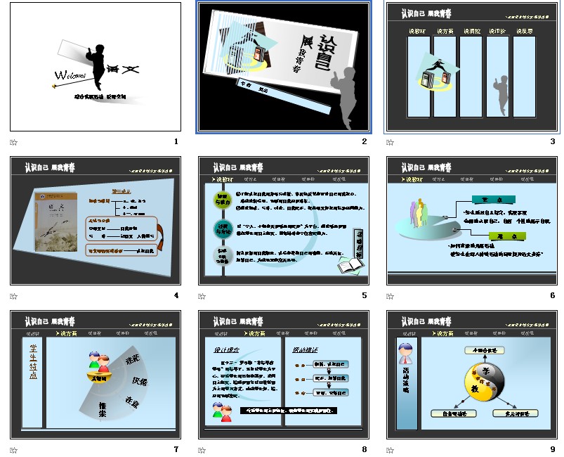 ①了解认识自我的方法与途径,客观地反思和评价自己的优缺点, 形成比较清晰、全面的自我整体形象。 ②通过阅读、写作、讨论、自我展示,提高语文知识的综合运用能力。