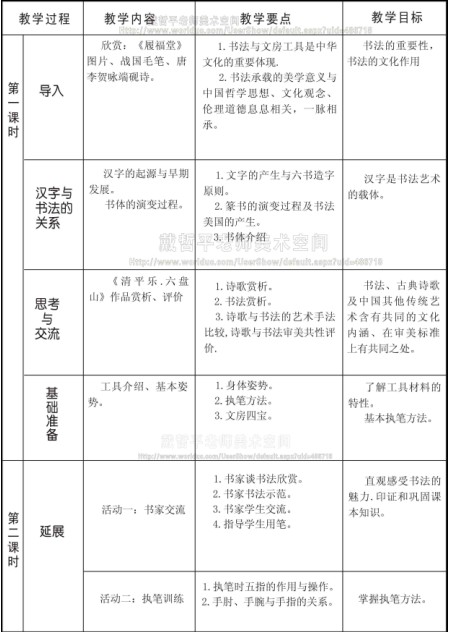 本课内容非常丰富,纵向涉及五千年中国文明史,横向涉及字体、书写工具、书写姿势等,目的是要学生从历史、社会、自然、民族多角度地观照书法,从而建构自我的书法文化结构,使学生明白如果不能在宏大的文化背景中去思考和认识书法,单纯从书写的角度去理解书法的话,认识必定是肤浅的,创作生涯也很可能是短命的。